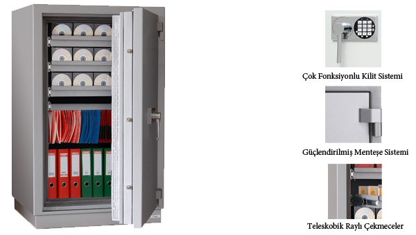 S 120 DIS, data kasaları için min. 120 dakikalık yangına dayanıklılık sertifikasıdır. Başarı testi 1090 C derecede ve darbe testi 9.15 metrede yapılmıştır.