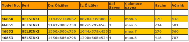 Kasaların çekmece ve raf dizilimleri ve dünlemeleri